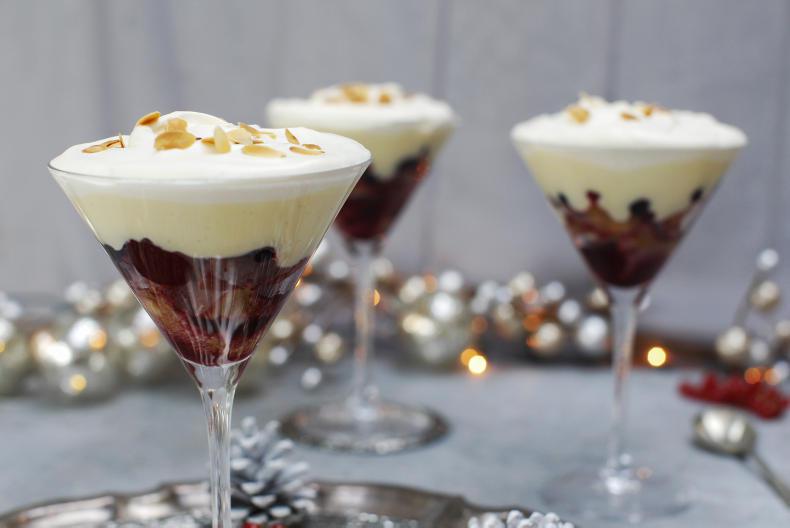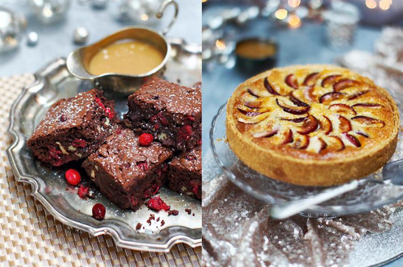 Warm chocolate brownies with cranberries and salted caramel are utterly decadent. If you fancy something a little lighter, layer your mulled fruit trifle in a cocktail glass for a wow effect and have dainty bites on the ready for visitors with orange and vanilla madelines.