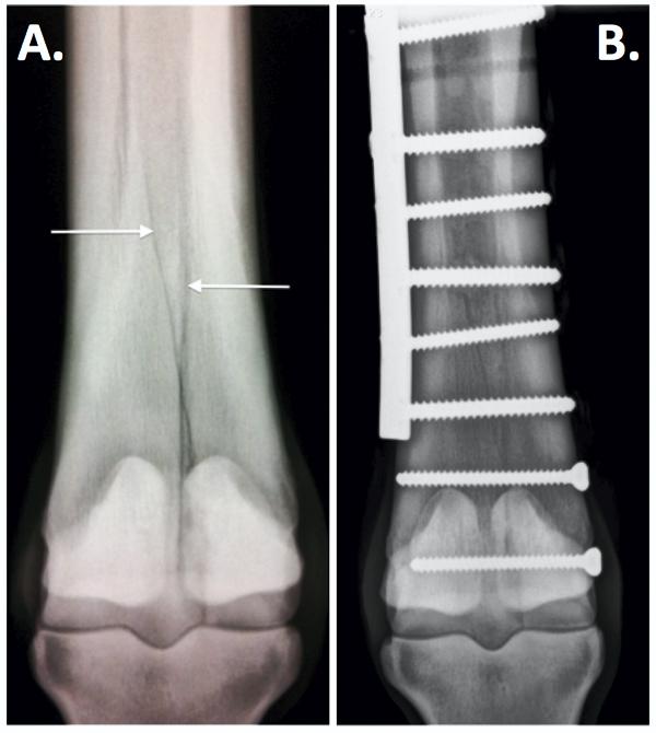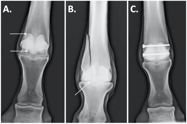 Condylar fractures are the most common long bone fractures in horses. They occur at the bottom of cannon bone where it meets the fetlock joint. They most typically occur in thoroughbred racehorses but are also prevalent in endurance horses and occasionally occur in three-day event horses.