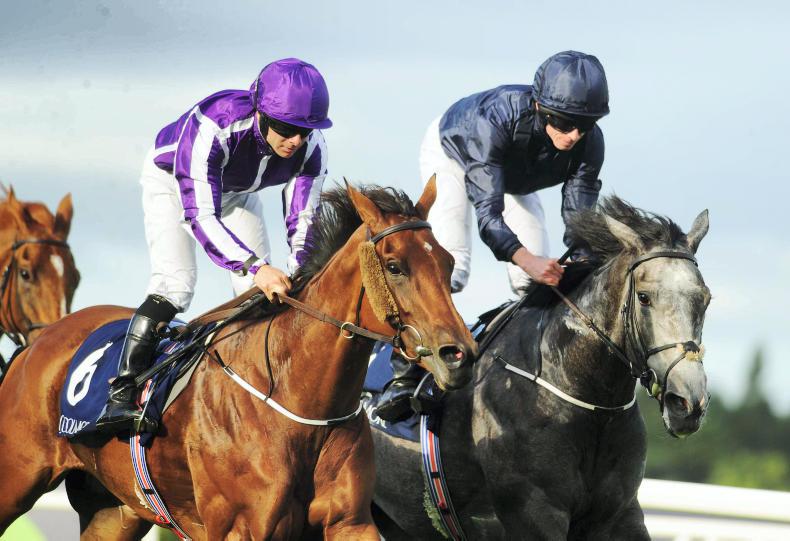 The Coolmore Fastnet Rock Matron Stakes. Hydrangea and Wayne Lordan (left) beats four time Group 1 winner Winter (right)Photo HEALY RACING.