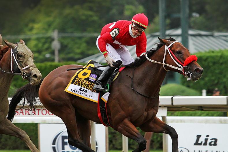 In a six-horse field, Irad Ortiz Jr. wasted no time on the third betting choice Letruska. The dual Eclipse Award winner Monomoy Girl chased outside her, with last year’s top three-year-old filly Swiss Skydiver along the inside in second.