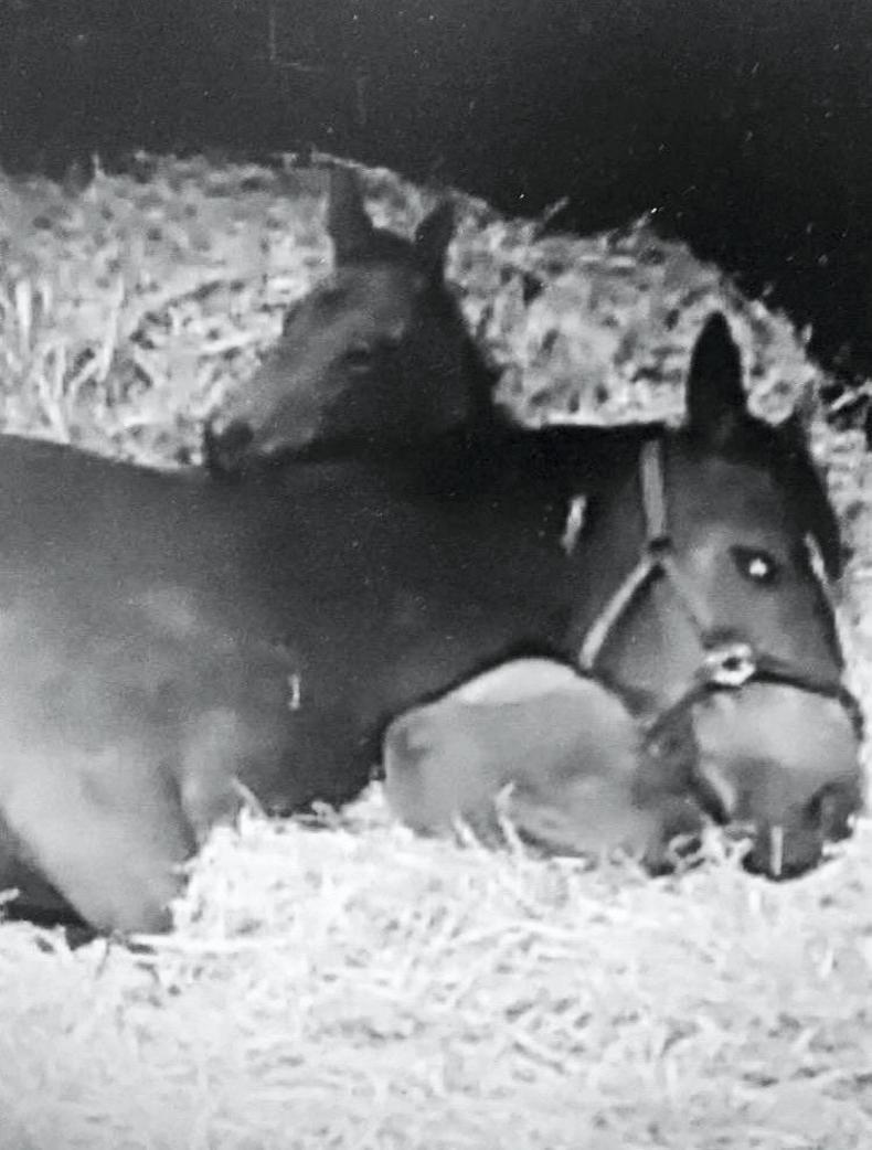 Above: Inothewayurthinkin and his dam Sway are captured on CCTV moments after the future Gold Cup winner was born on April 4th, 2018, at Islandmore Stud