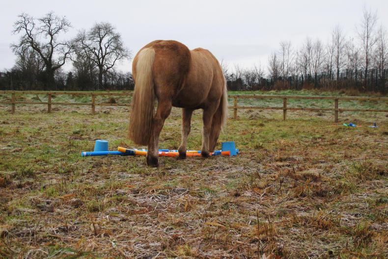 Just as the students agreed that they were going to apply their utmost attention to the task at hand and were finishing up their group discussion with O’Meara and Robertson, I looked across at one of the horses who had walked alone into the centre of the paddock to the obstacle and simply stepped over it! This moment can be seen in the accompanying images.