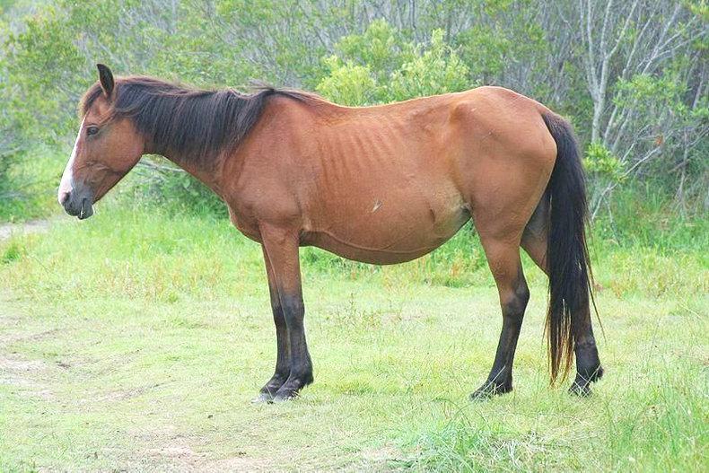 Roundworms are most often a problem in young horses (especially foals, weanlings and yearlings). Adult roundworms are several inches long and almost the width of a pencil; in large numbers they can cause blockage (or impaction) of the intestine.