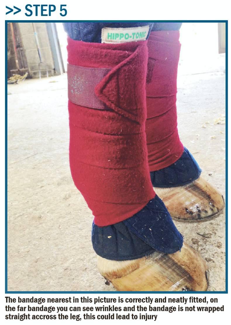 Poorly applied bandages with wrinkles or twists and bandages which are too tight can leave marks on the horse’s legs and could possibly lead to tendon damage.