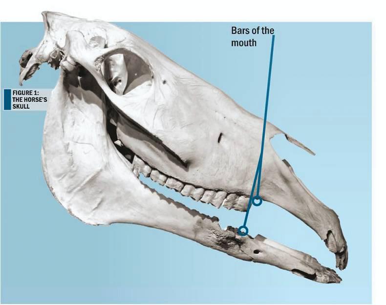 The bars are the area in the horse’s mouth where a bit communicates pressures to the horse most effectively. These are tissue-covered sensitive cartilage on either side of the jaw between the front and back teeth (Figure 1). Between the bars, the bit lies across and presses on the horse’s tongue. Different bits may also apply pressure on the horse’s lips, roof of mouth, poll, nose and curb groove.