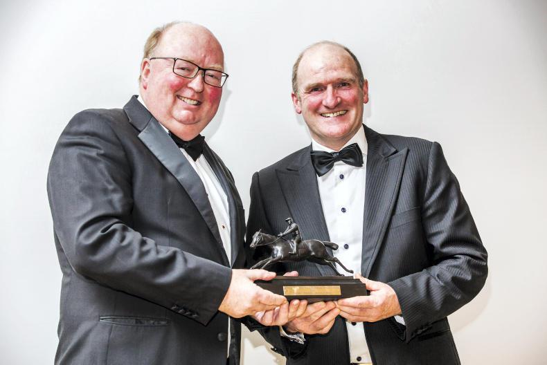 Niall Flynn accepting an award for National Hunt Owner Breeder from Christy Grassick at the AIRO awards in 2018 \ Philip Doyle