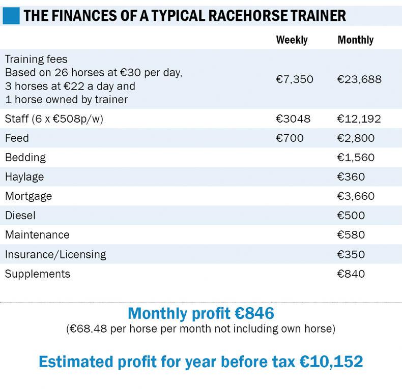It would be great to be getting €30 a day for every horse in the yard but the reality is that I own one and have shares in three others. I know there are other trainers in much deeper than I am.