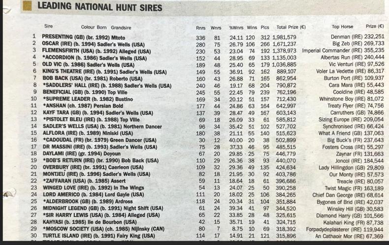 It was worth a look back to this pre ‘go to France’ era, and the sires that fitted the jumps bill then. Can we blame Sadler’s Wells for all this turn around!