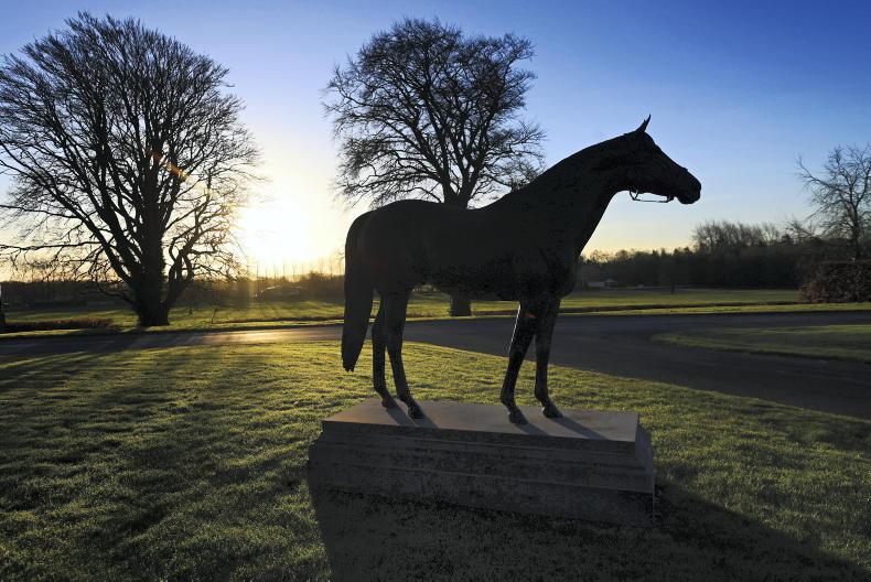 The statue of Giant's Causeway as morning breaks in Ballydoyle Tipperary \ Healy Racing