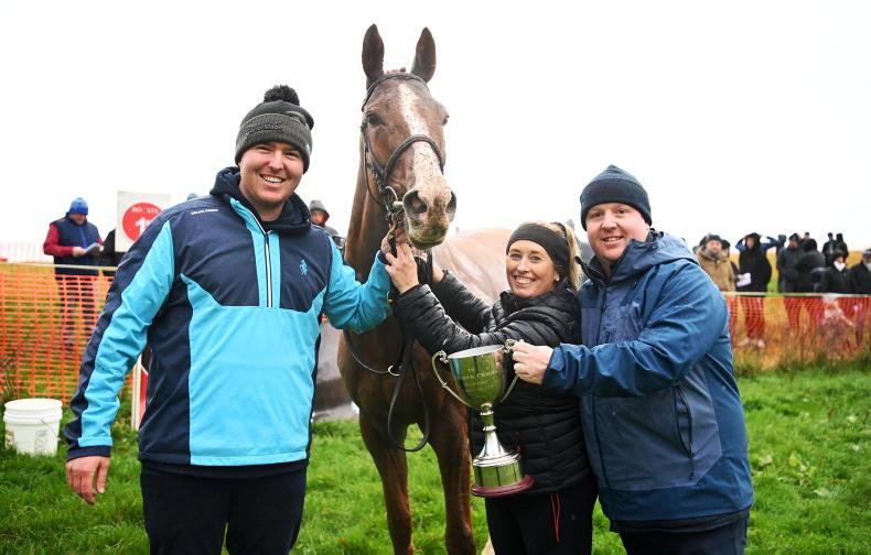 Oisin Mahon, Sinead O’Sullivan and Fearghal Hogan after Old Coast Road won the four-year-old geldings’ maiden \ Healy Racing