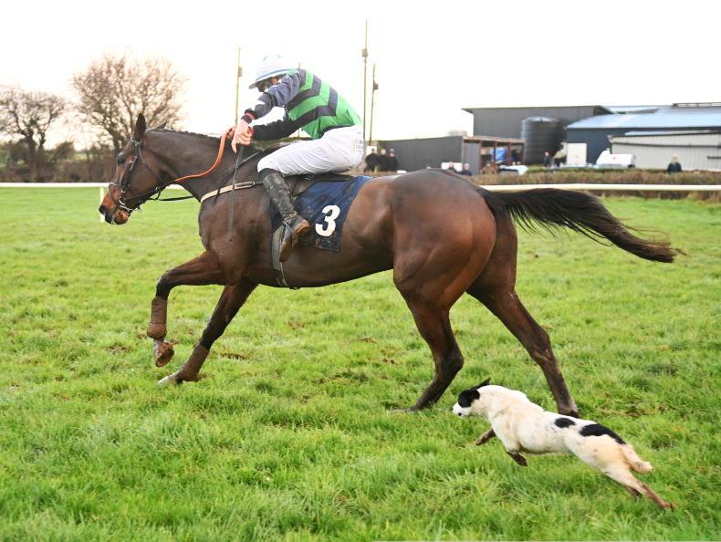 Going, going at Lingstown, Spanish D’ange and Eoin O’Brien part company in the four-year-old geldings’ maiden \ Healy Racing