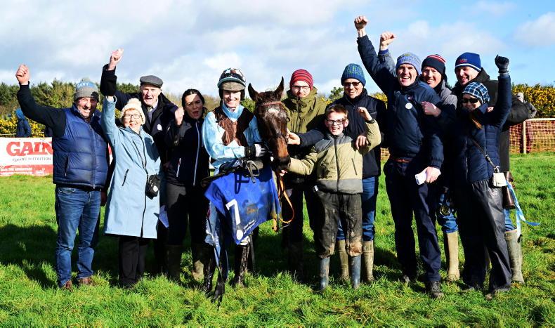 Knockanard cheers for Oh My Jenny and Johnny Barry after taking the mares’ winners of one for the Dee Lads Partnership \Healy Racing