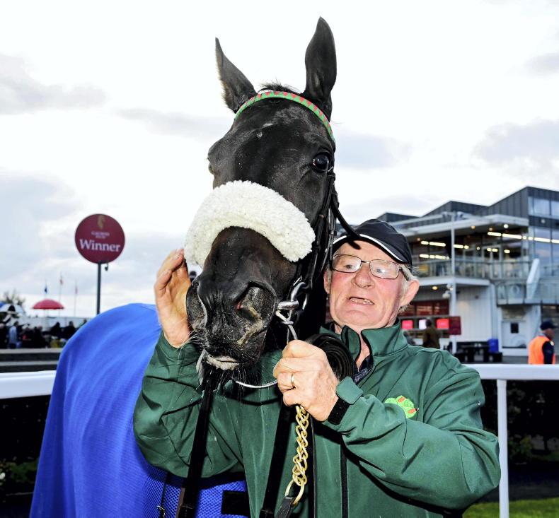 Galway winner Sharanga and groom Pat Thorpe after the Sean Cleary Memorial Fillies Maiden \ Healy Racing
