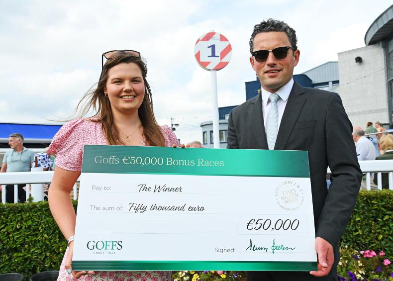 Sophie Webber presents Michael O'Callaghan after Fresh Fade won the Irish EBF Auction Series Maiden at Naas \ Healy Racing