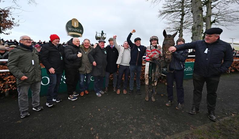 The BDS Syndicate celebrate Now Is The Hour and Eoin Staples winning the Goffs Thyestes Handicap Chase \ Healy Racing