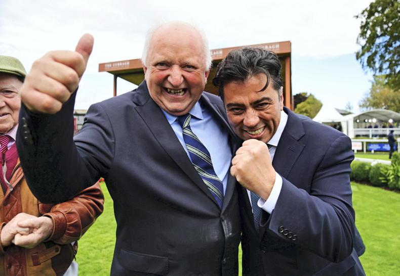MV Magnier, Paul Smith and Michael Tabor after Delacroix won the Royal Bahrain Irish Champion Stakes \ Healy Racing