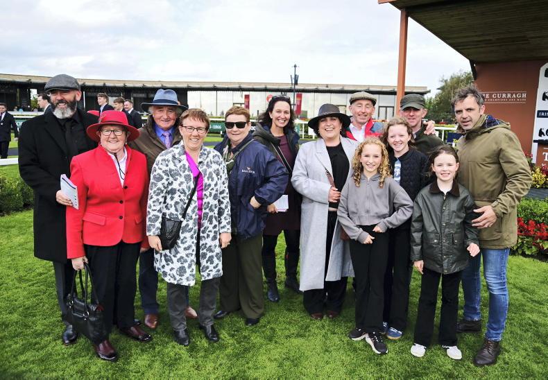 Al Riffa and Dylan Browne McMonagle with family after winning the Comer Group International Irish St. Leger \ Healy Racing
