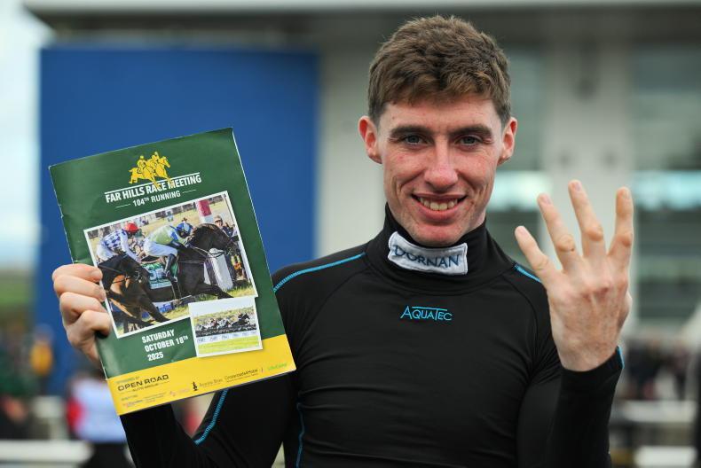 Jack Kennedy pictured with Far Hills Racecard where he rode four winners for trainer Gordon Elliott \ Healy Racing