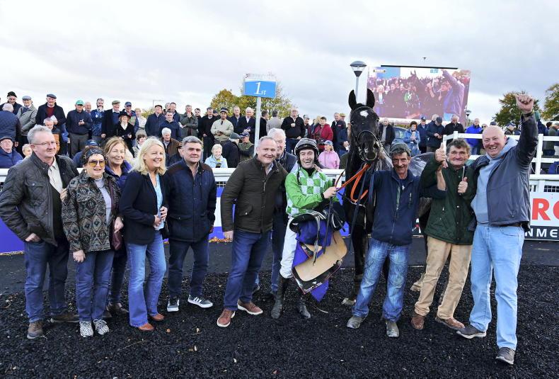 A happy gang at Limerick after Crowsatedappletart and Gavin Brouder won for trainer Mick Winters \ Healy Racing