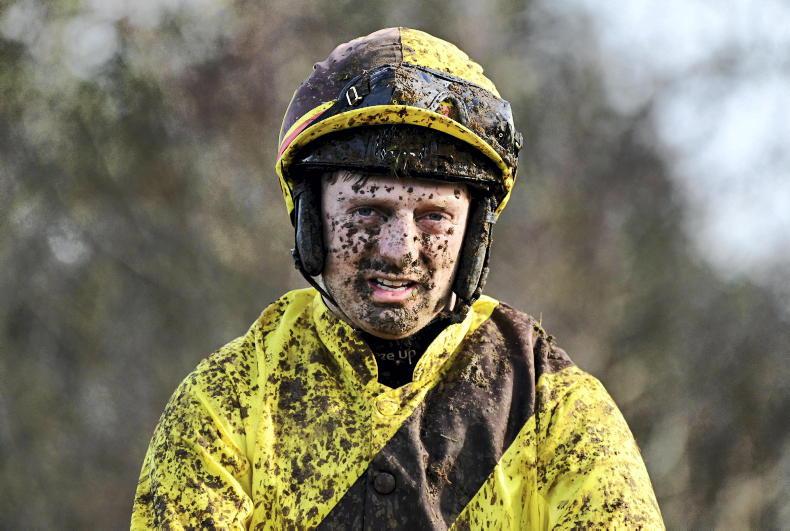Winter is here at Knockmullen House with Sean O'Rourke in the mud after riding in the mares' maiden \ Healy Racing