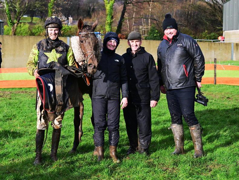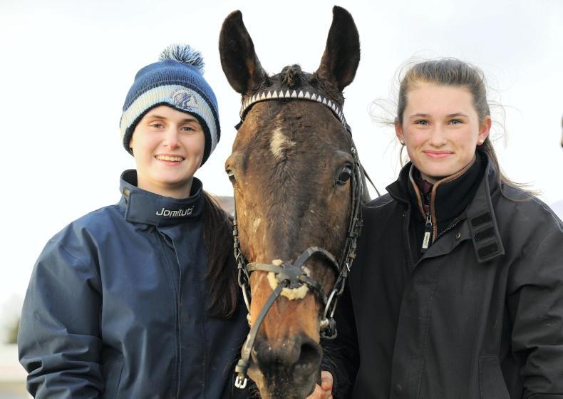 At Dromahane, Dempseys Diamond with Siobhan and Cliona Crowley grand daughters of trainer Pat Crowley after winning \ Healy Racing