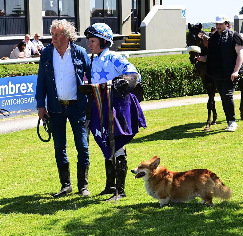 At Wexford, trainer Robert Murphy with Richard Deegan and dog Corgi \ Healy Racing