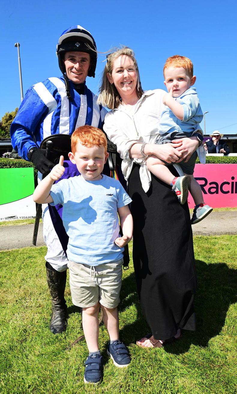 Lilian Bland and Richie Deegan with his wife Ellie, sons, Mikey and Ollie after winning the Forth Mountain Mares Handicap Hurdle at Wexford \ Healy Racing