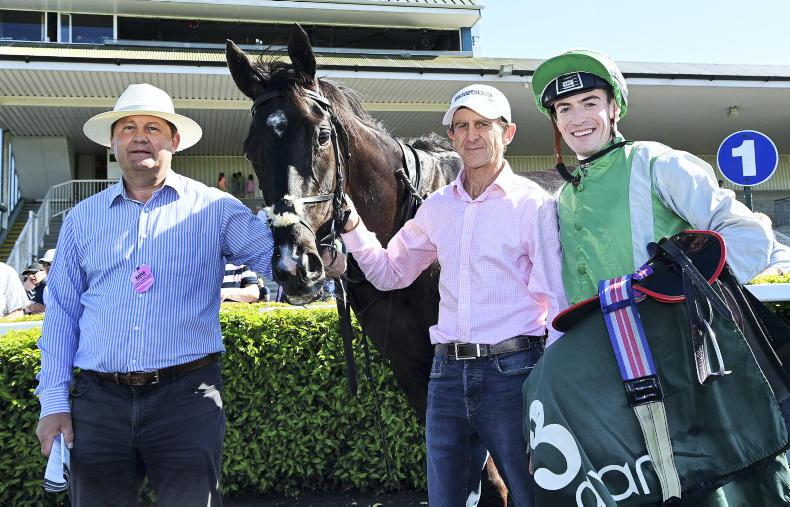 Leopardstown winner Banner Beauty and Robert Whearty for trainer Eddie Buckley and groom Sarah Blois \ Healy Racing.