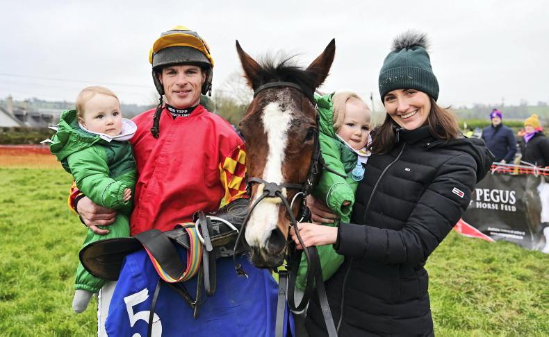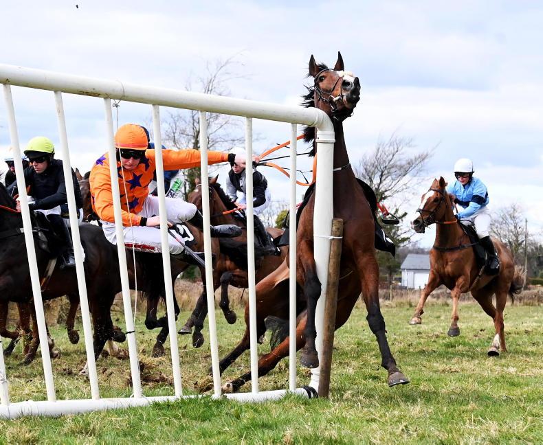 Farmacaffley in February - Josies Dylan and Maeve Carlin part company at the last in the geldings' maiden both were okay after their fall \ Healy Racing
