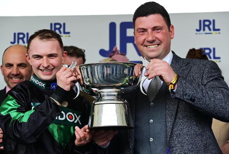 Resplendent Grey and Sean Bowen winning last season's bet365 Gold Cup \ Healy Racing