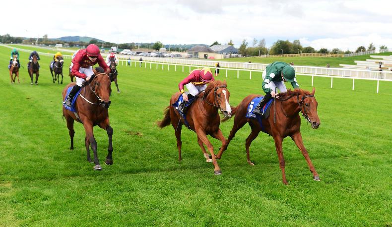 Dermot Weld and the Aga Khan may have missed out in the Beresford but they have plenty to look forward to with the very well backed Katiba (12/1-6/1) who bested 22 rivals to make a winning debut Irish Stallion Farms EBF Median Auction Maiden over a mile. This Oisin Orr-ridden daughter of Footstepsinthesand showed lots of promise for 2020 in getting home by a head from the strong-finishing Gin Blossom. The winner is likely to be kept under wraps until next year.