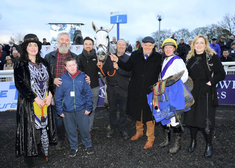 Moskovite and Denis Hogan with the Hennelly Family after winning the O'Kelly Brothers Mares Handicap Hurdle at Limerick. Photo Healy Racing