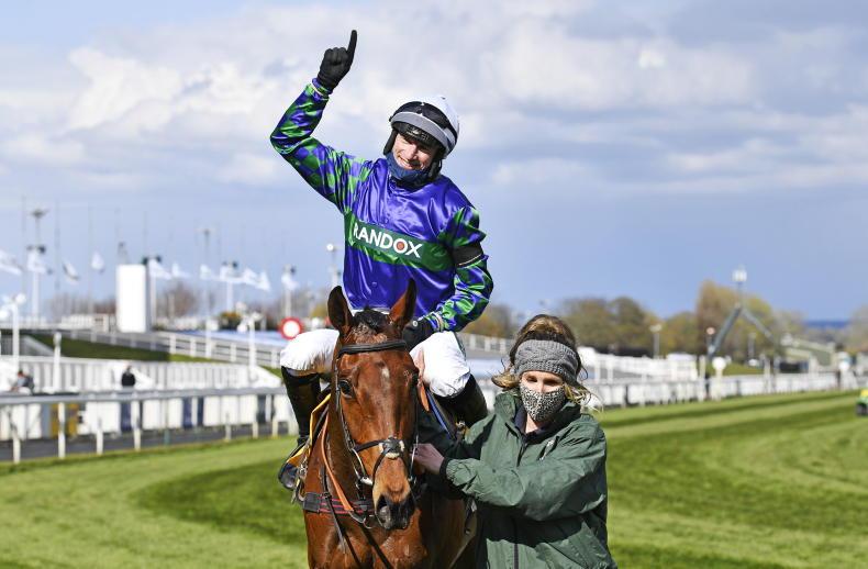 Thyme Hill and Tom O'Brien after winning the Grade 1 Ryanair Stayers Hurdle at Aintree \ Healy Racing