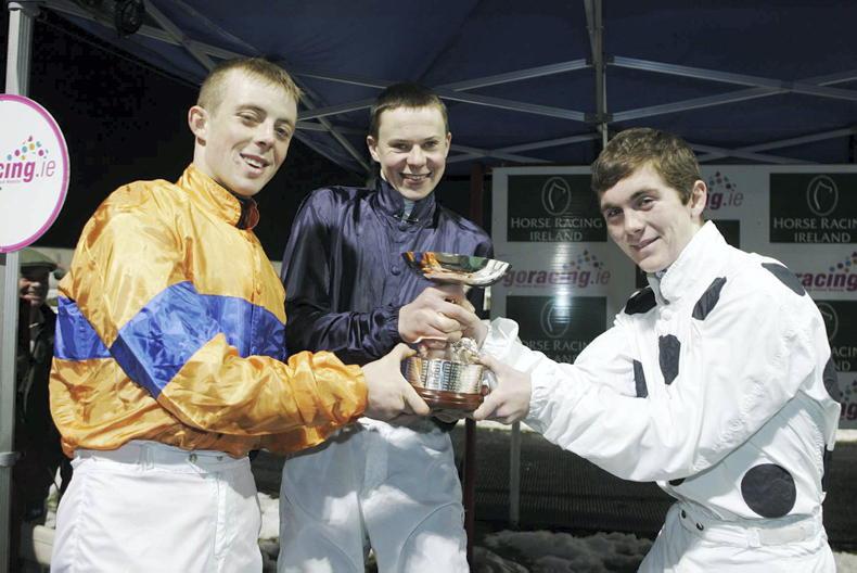 Ben Curtis, Joseph O'Brien and Gary Caroll after they shared the apprentice jockeys' championship with 39 winners each in 2010 \ carolinenorris.ie