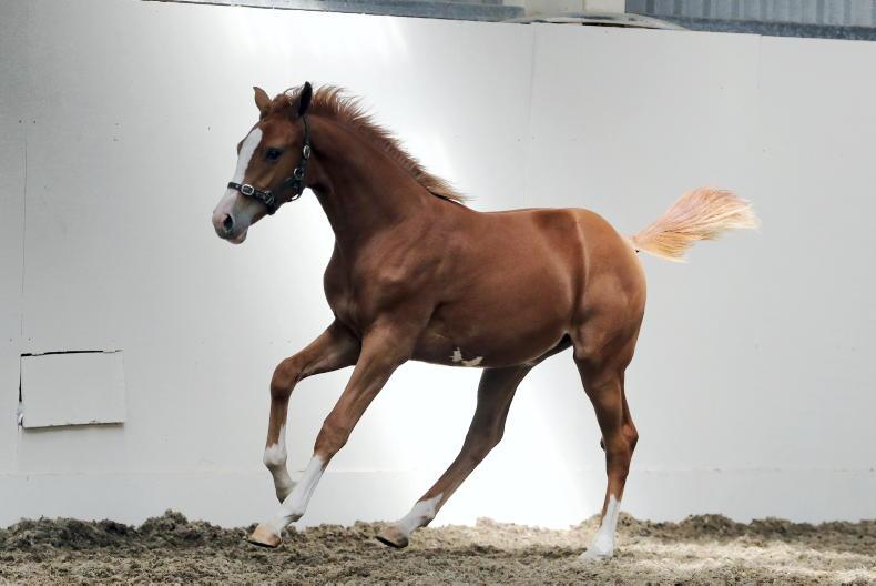 Joe Allen's Casall Ask filly who topped the 2020 Goresbridge Supreme sale of show jumping foals at the Irish Breeders' Classic at Barnadown when bought by Tim MacDonagh for €18,000 \ Laurence Dunne Jumpinaction.net