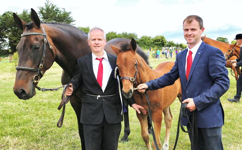 John McDonnell with his Breeders' Championship qualified CBI Beauty Queen and her Vancouver foal, shown by nephew Johnathon at Athlone Show \ Susan Finnerty