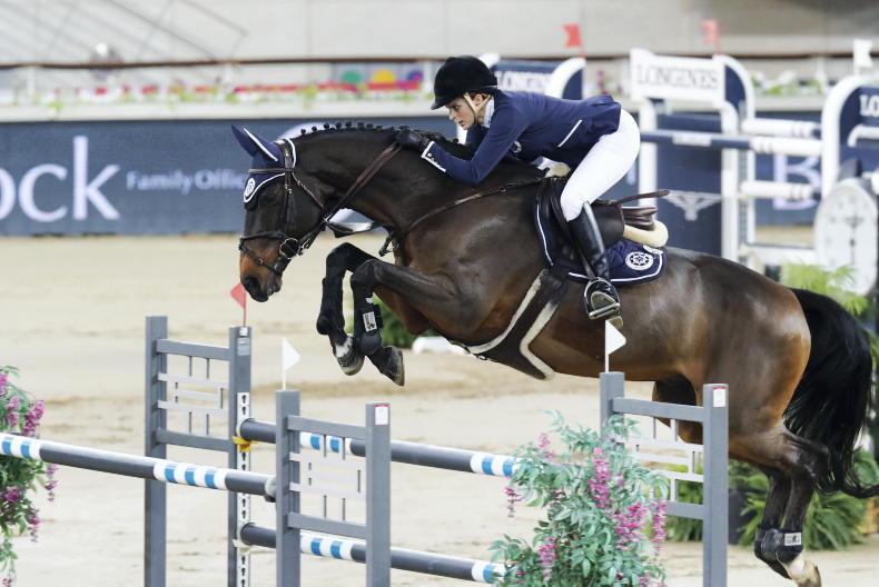 Ger O'Neill and MHS High Hopes on their way to winning the 1.50m HSI Premier Grand Prix at Mullingar in August \ Laurence Dunne jumpinaction.net