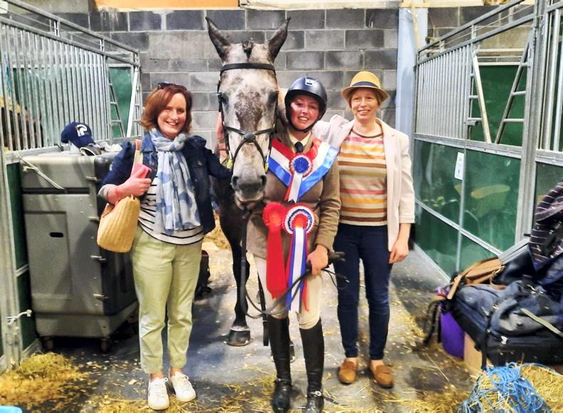 Team Carrafarm: Samantha Fitzsimons and Niamh Grimes with Carrafarm Constellations and winning owner-rider Sarah Maxwell at Dublin this year