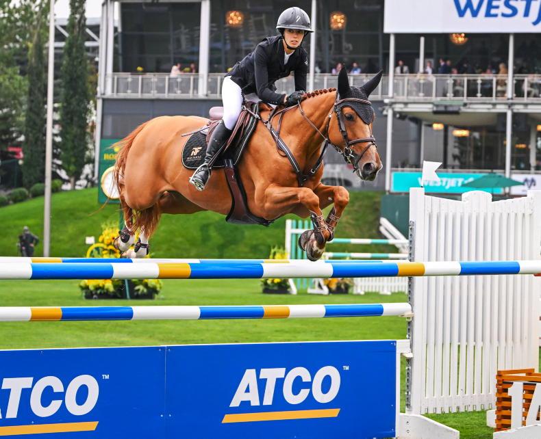 French rider Nina Mallevaey and My Clementine (ISH) at Spruce Meadows. The David Prentice-bred mare is the highest placed ISH show jumping horse in the WBFSH rankings for 2025 \ Spruce Meadows Media/Mike Sturk