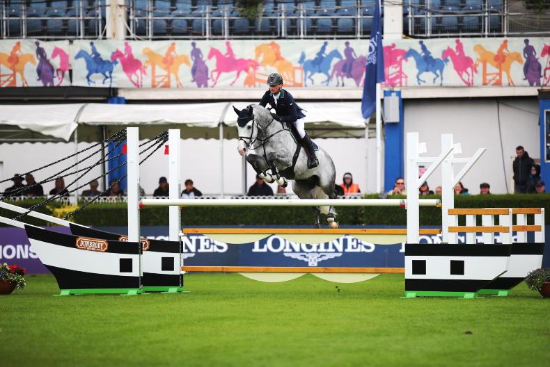 Denis Lynch and Cornets Iberio at the 2019 Dublin Horse Show when they won all three of their international classes \Laurence Dunne Jumpinaction.net