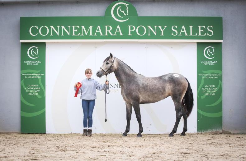 Lot 301, yearling Clareville Arctic Fox, was sold for €3,400 at the Connemara Pony Tales. Pictured with regular seller Grace Fahy \ Rynes Walker