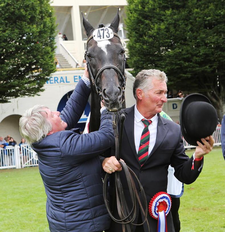 A delighted Gladys McArdle with Lucarelli, shown by Sam McCormack, after he won the Croker Cup for Drumhowan Stud in 2024 \ Susan Finnerty