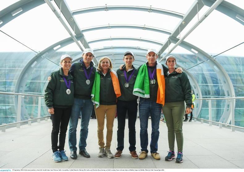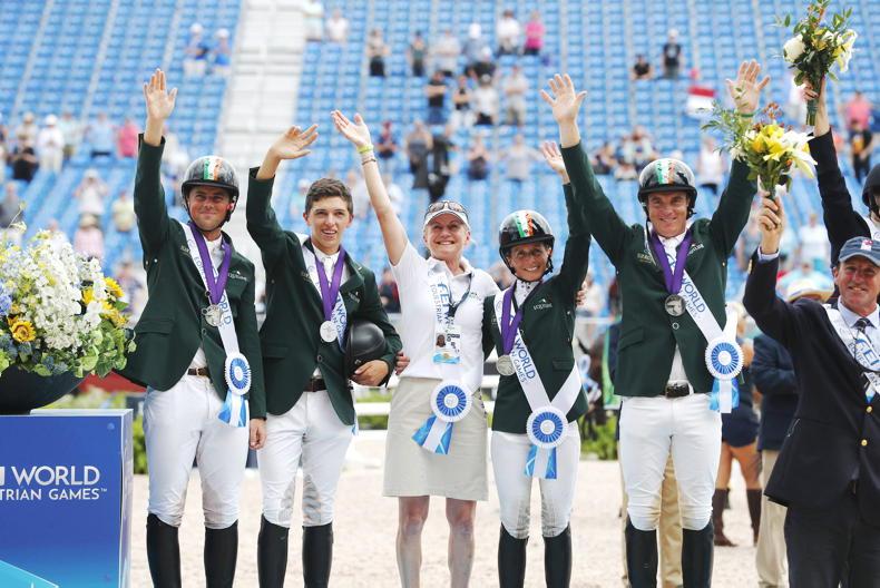 The silver-medal winning Irish team at the 2018 World Equestrian Games in Tryon. (L-r) Sam Watson, Cathal Daniels, chef d'equipe Sally Corscadden, Sarah Ennis and Padraig McCarthy \ Tomas Holcbecher