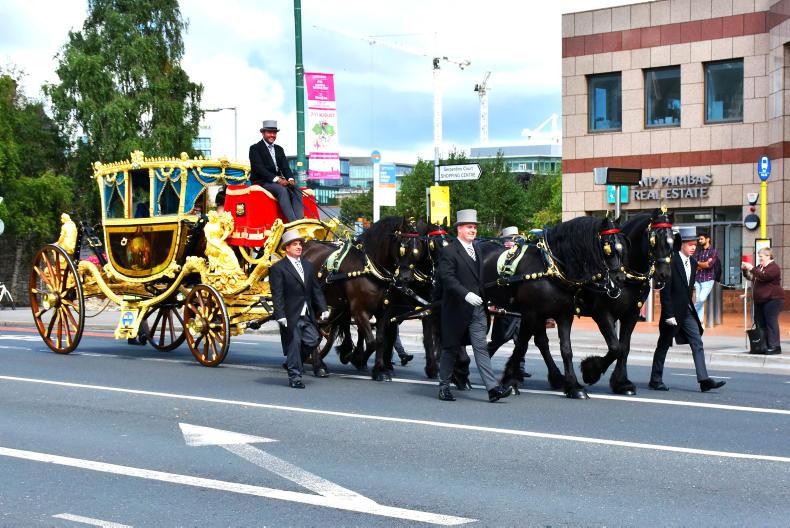A SPECTACULAR sight that most people attending the Dublin Horse Show miss is the pageantry surrounding the arrival of The Lord Mayor of Dublin on the opening day of the Show in the ornate 235-year-old coach, gilded in gold and drawn by four black coach horses dressed in pristine harness complimented by hand crafted brass fittings.