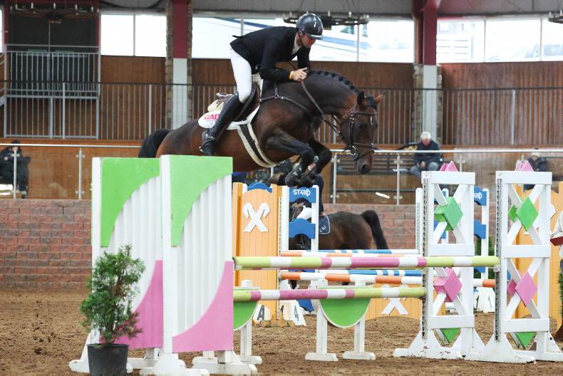 Vincent Byrne and Cartier VDL, winners of the Four Year Old Grand Final at Cavan Indoor Championships 2023 \ Rolf Stenberg jumpinaction.net