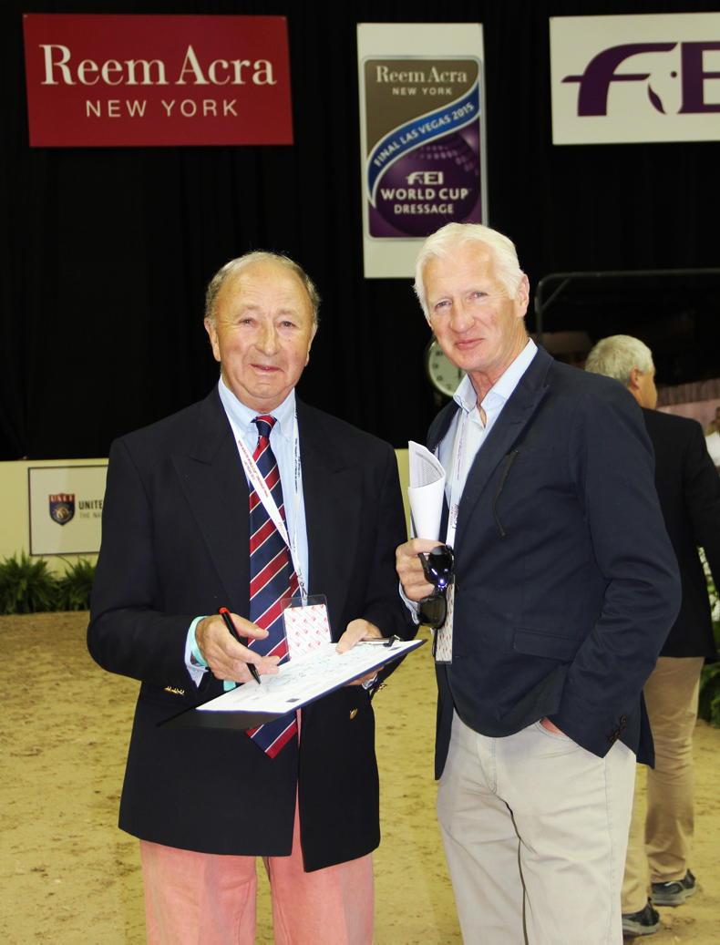 FEI commentator and one of Milton's former jockeys Steve Hadley, pictured with then Irish show jumping team manager Robert Splaine \ Susan Finnerty
