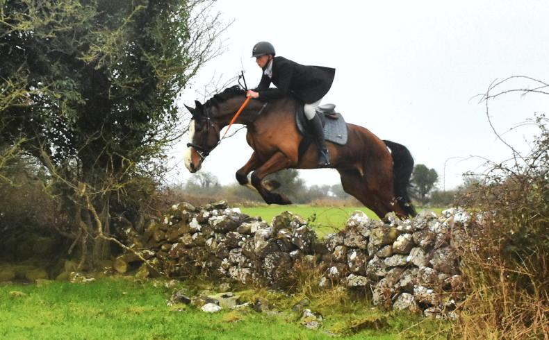 Mary Murphy on a smashing Cob at the North Galway Foxhounds meet at Ger O'Briens Farm \ Noel Mullins