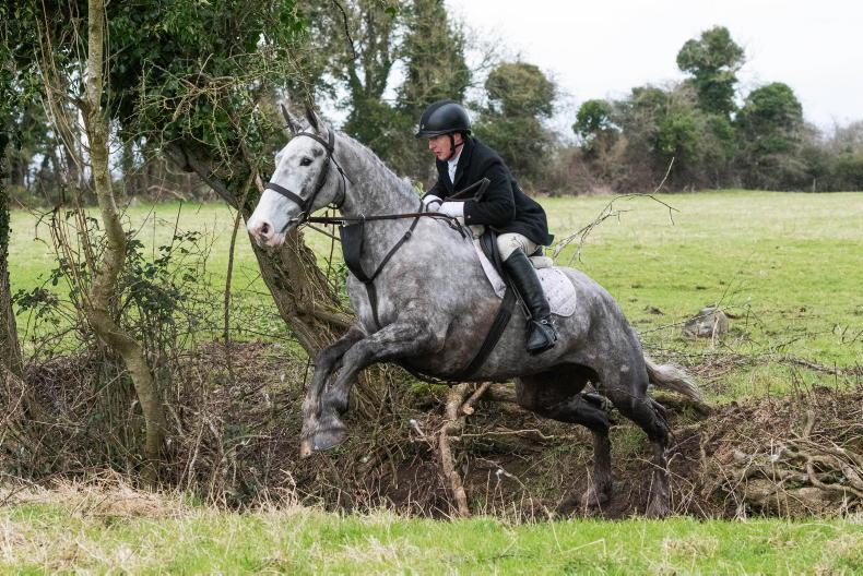 Miya Kelly popping a nice wall while hunting with the Kildare Foxhounds from Cut Bush \ Siobhan English