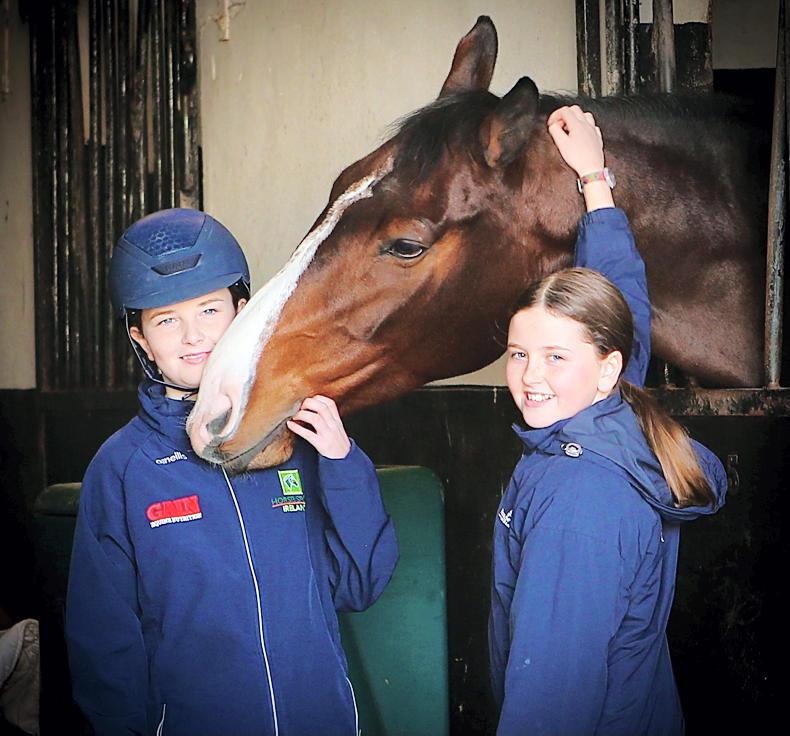 Lily and Daisy O'Dea with Catch My Rebel De Grandin Z, co-owned with Vanessa Mannix, at home at West Clare Equestrian Centre \ Susan Finnerty