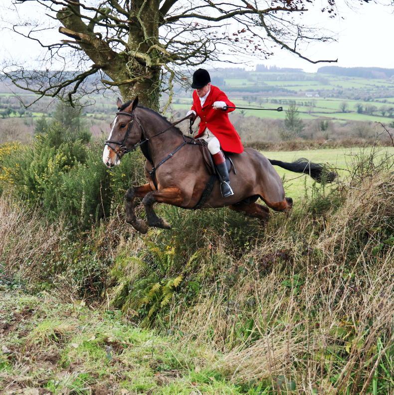 Hounds went on to draw the New Line, which extends for a couple of miles of low-lying covert. As hounds drew, the field had a feast of jumping, popping into the river Arrigal in numerous places.